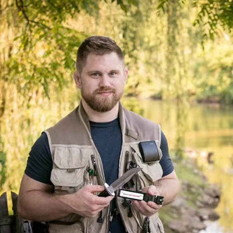 PORTABLE AND EASY TO STORE: Its compact and lightweight design makes it ideal for home use, outdoor barbecues, or travel, allowing you to maintain your knife's sharpness anytime, anywhere.