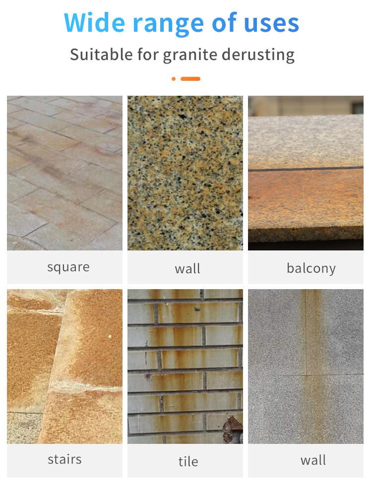 Instantly dissolves and removes rust and fine particles caused by atomisation/oxidation from metal surfaces.