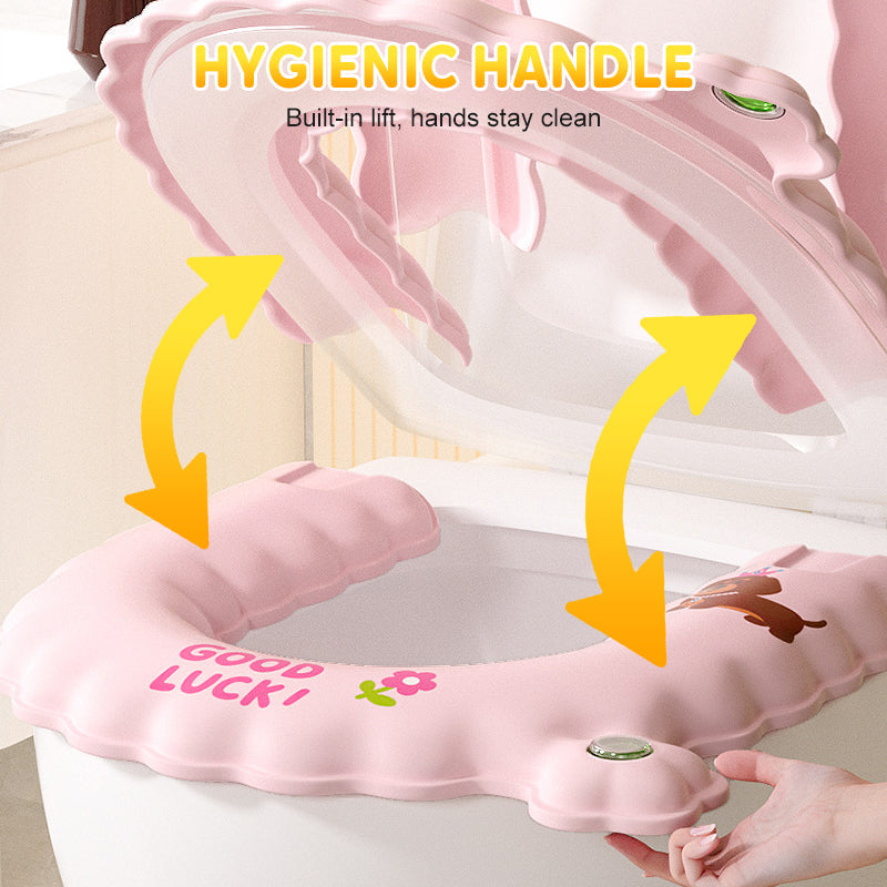 SOFT & SKIN-FRIENDLY: Made with high-quality EVA material, this toilet seat cover offers a soft, cushioned touch that is gentle on the skin. Its elastic design provides comfort for long sitting, ensuring a pleasant and irritation-free bathroom experience.